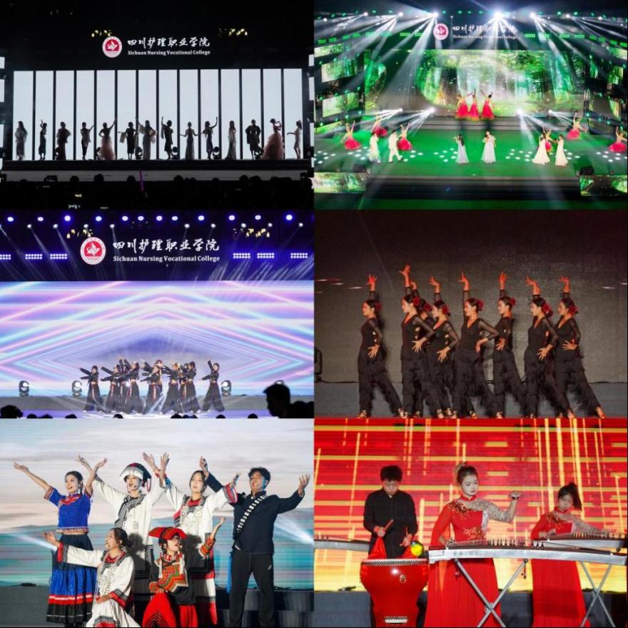 晚会以“启航一淬炼一远行”为主线,通过“启航:仁心初绽”“淬炼:技以载道”“远行:守护星河”三个篇章,生动展现了川护学子从入学求知、技能锤炼到职业奔赴的成长历程。节目融合器乐、歌曲、朗诵、舞蹈等多种艺术形式并将专业展示融入其中,充分彰显了川护师生爱党、爱国、爱校的情怀和丰富多彩的校园文化。舞蹈《新生代,舞所畏》《beggin》活力四射,传递出学子砥砺奋进的青春朝气;歌伴舞《如愿》《五色经纬》唱响了昂扬向上的青春旋律;舞蹈《仁心若水》以优美舞姿演绎了对祖国未来的美好憧憬。各二级学院结合专业特色呈现了精彩节目,智慧护理学院的情景表演《险途救援》、药学院的舞蹈《本草浮光》、医技学院的走秀《光韵面纱》、康复学院的朗诵《前行的答案》,均以艺术化形式展现了学子们对医学专业的自信与热爱。教师独唱《向往神鹰》深情动人,将现场气氛推向高潮。历时近一个半小时的晚会,在民族地区学生表演的歌舞《山水同脉,医路同心》中圆满落幕。